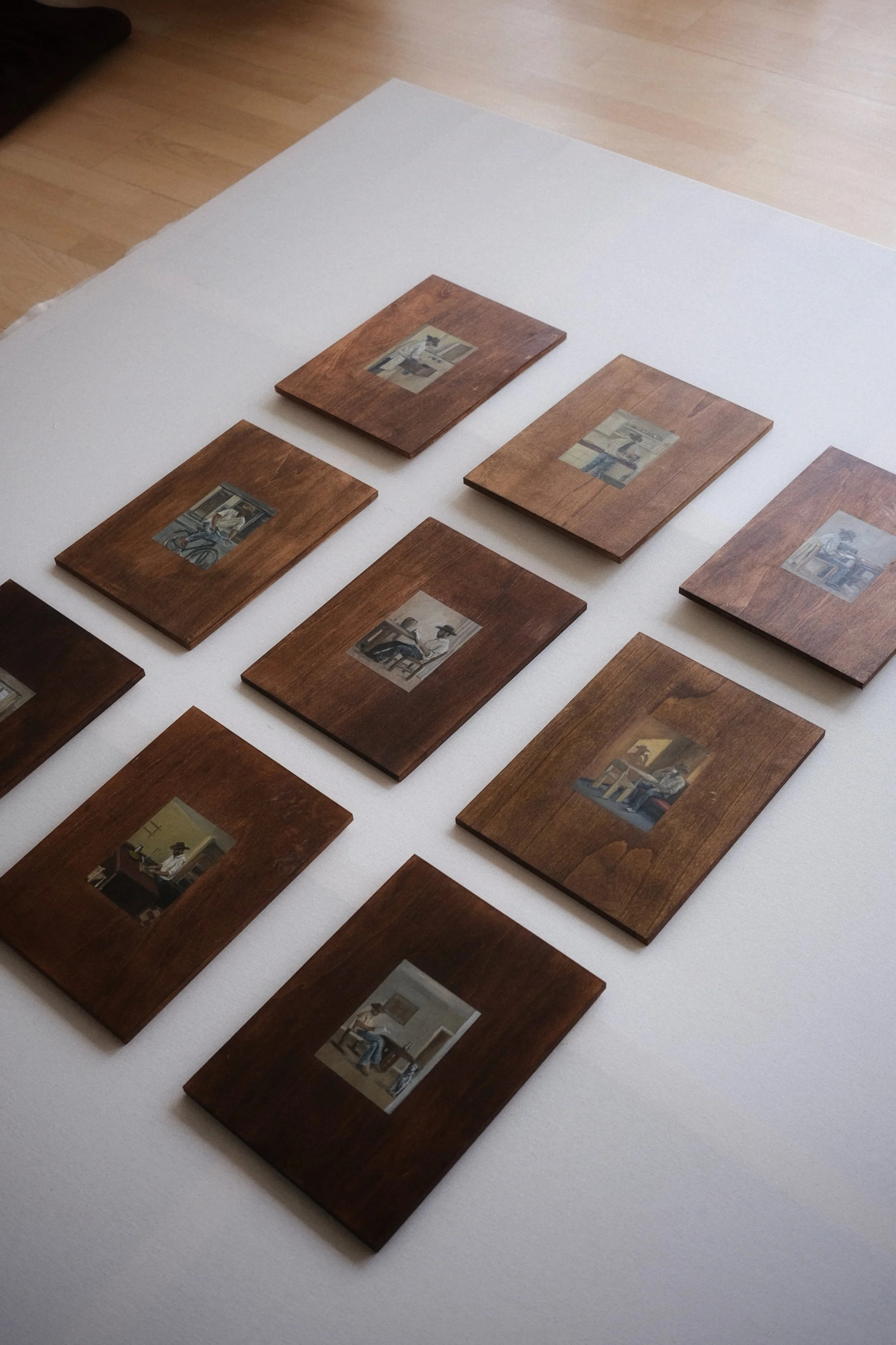 A series of 9 miniature paintings which function like windows into quiet moments. Painted on plywood, they frame everyday scenes of rest, presence, and stillness. The works celebrate the understated beauty of ordinary life—those brief pauses where nothing much happens, yet everything feels complete.